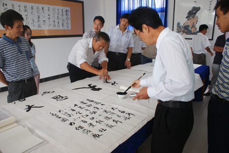 五橫素有“書畫之鄉(xiāng)”的美譽(yù)。清代,這里誕生了被譽(yù)為“千年一人”的書法大師鄧石如,如今,這里村村都有酷愛書畫的農(nóng)民,不少人還是市級(jí)以上書畫家協(xié)會(huì)的會(huì)員。為使這寶貴的文化藝術(shù)得到更好地傳承和弘揚(yáng),五橫鄉(xiāng)黨委政府高度重視文化建設(shè),高標(biāo)準(zhǔn)建設(shè)了具有五橫文化特色的綜合文化站,不定期組織書畫筆會(huì)、書畫展覽和書畫培訓(xùn),各中小學(xué)普遍開展書畫特色教育。此次書法活動(dòng)的開展,進(jìn)一步營造了五橫鄉(xiāng)喜迎黨的“十八大”召開的濃郁文化氛圍,為五橫農(nóng)民書畫愛好者們搭建了相互學(xué)習(xí)交流的平臺(tái),激發(fā)了他們參與文化活動(dòng)的積極性。(朱華兵劉曉燕)