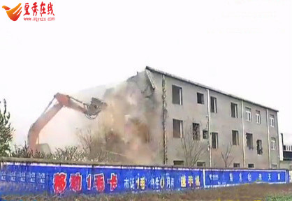 12月18號上午,在宜秀區大橋街道辦事處眉山村金閘村民組看到,幾臺挖掘機和推土機正在拆除兩座近4600平方米的廠房和住房。