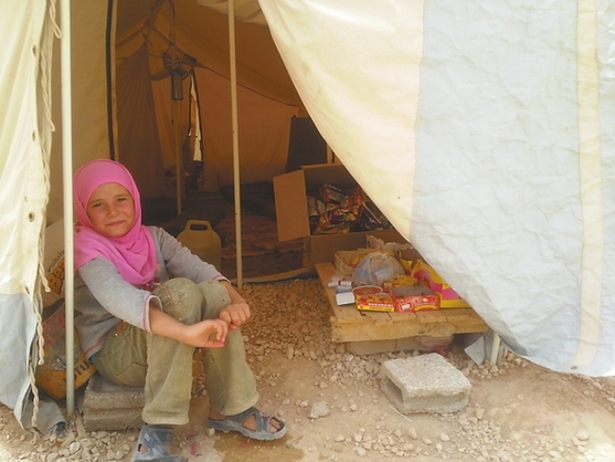 圖片新聞:一個小姑娘在難民營內(nèi)幫父母打點營生。劉暢攝