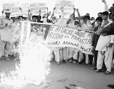 今年8月31日,巴基斯坦民眾舉行示威游行,抗議美國(guó)無(wú)人機(jī)對(duì)部落地區(qū)發(fā)動(dòng)攻擊。 人民視覺(jué)