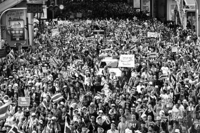 黃衫軍有“占領”的傳統。2006年,黃衫軍曾憑借大規模集會和占領主要街道等活動直接觸發軍事政變,2008年曾占領總理府和曼谷兩座機場。“黃派”這次卷土重來,在一些分析師看來,有可能會引發新一輪的社會動蕩。僅24日一天,民主黨號稱集會人數達到18萬。