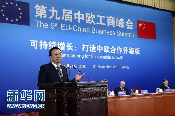 11月21日,國務院總理李克強在北京人民大會堂與歐洲理事會主席范龍佩、歐盟委員會主席巴羅佐共同出席中歐工商峰會并致辭。 新華社記者龐興雷 攝