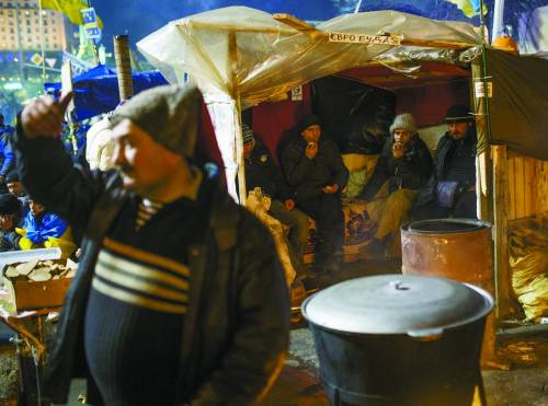 在烏克蘭首都基輔,數(shù)萬名反對派和當局的支持者頂著嚴寒繼續(xù)在獨立廣場和馬林斯基公園舉行集會,這場因烏克蘭政府上月底宣布暫停與歐盟簽署聯(lián)系國協(xié)定籌備工作引發(fā)的抗議活動已經(jīng)持續(xù)了3周。17日,示威者占據(jù)了基輔通向俄羅斯的道路,想要阻止總統(tǒng)亞努科維奇赴俄參加與普京的會晤。