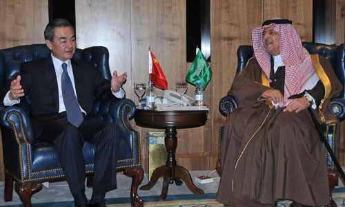 中國外交部長王毅(左)在利雅得與沙特外交大臣費薩爾舉行會談