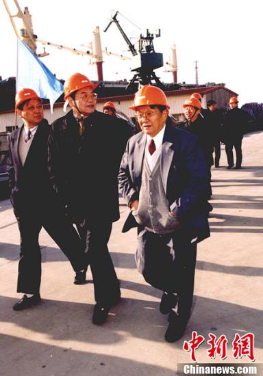 原中共江蘇省江陰市華西村黨委書記吳仁寶因患肺癌醫治無效,于2013年3月18日18時58分在華西村家中逝世,享年85歲。1957年擔任華西村黨支部書記以來,吳仁寶把一個貧窮落后的小村莊建設成為享譽海內外的“天下第一村”。2005年,他作為封面人物登上美國《時代周刊》。圖為2001年12月16日,“華夏第一村”江蘇省江陰市華西村黨委書記吳仁寶來到隔江相望的江蘇靖江參觀考察,尋求合作。中新社發 江建華 攝 圖片來源:CNSPHOTO