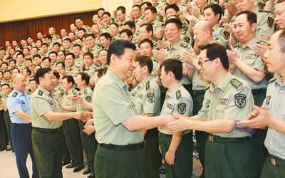 習近平指出,要堅持把思想政治建設擺在首位,堅持不懈用中國特色社會主義理論體系武裝官兵,持續培育當代革命軍人核心價值觀,發展先進軍事文化,加強各級黨組織建設,確保思想政治上特別純潔、特別過硬、特別堅定。要教育引導官兵特別是中高級領導干部自覺堅定政治信念、站穩政治立場、嚴守政治紀律,做到任何時候任何情況下都同黨中央、中央軍委保持高度一致,堅決聽從黨中央、中央軍委指揮。當前和今后一個時期,加強部隊思想政治建設的一項重要任務就是,加大強軍目標學習宣傳貫徹力度,把實現強軍目標貫穿到部隊建設全過程和各領域。