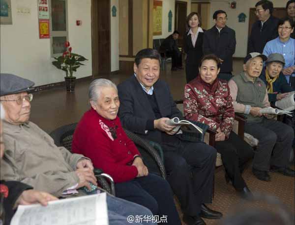 新華網北京12月28日電 據新華社新華視點微博報道,在四季青敬老院,正在開展讀書讀報活動的老年人見到總書記來了,十分激動,熱情邀請總書記聽他們誦讀《養生歌》。習近平認真聽完后,同老人們交流心得。他說,活到老,學到老。保持健康心態和身體,就要靠這樣積極進取的精神。從你們的讀書活動中我得到很多啟示。