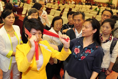 圖為解放軍第309醫院康復醫學科鄭光新教授在指導聽眾進行鍛煉