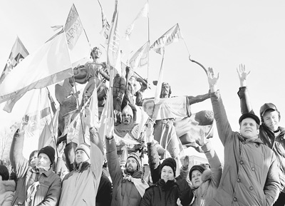 2013年12月22日,烏克蘭基輔,親歐盟抗議者在獨立廣場持續集會。