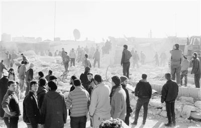 2013年12月22日,敘利亞阿勒頗郊區,人們在廢墟中搜索幸存者。