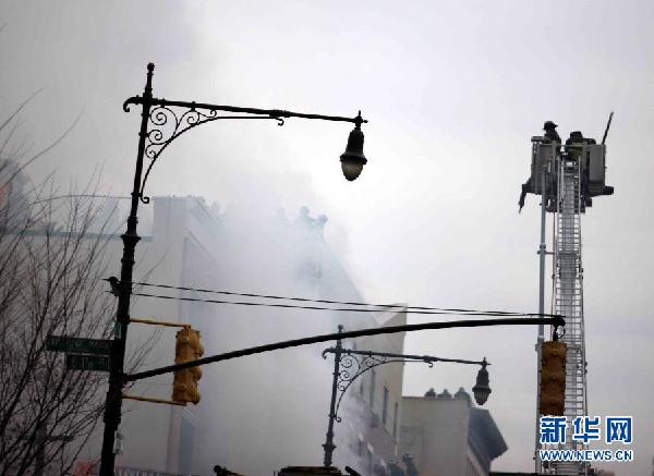 3月12日,在紐約曼哈頓區,消防人員在火災現場救援。美國紐約市曼哈頓區12日上午發生爆炸,導致兩棟建筑坍塌,爆炸原因是煤氣泄漏。兩棟坍塌的建筑位于紐約曼哈頓區第116街與公園大道的交界處。