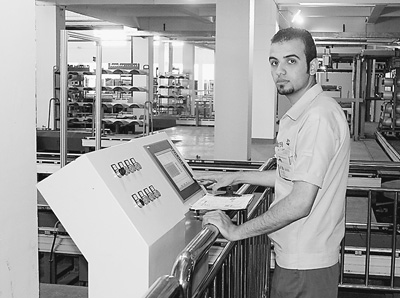中埃蘇伊士經(jīng)貿(mào)合作區(qū)內(nèi),巨石集團(tuán)埃及公司年產(chǎn)8萬(wàn)噸玻璃纖維。圖為生產(chǎn)線上的埃及技術(shù)員。 |