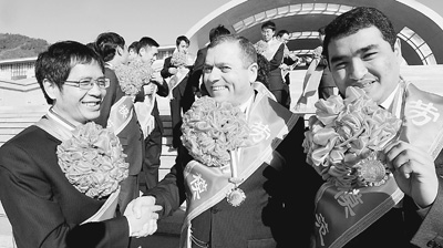 來(lái)自中石化敘利亞分公司的艾勒·阿克瑞(左二)以?xún)?yōu)秀業(yè)績(jī)獲得了該公司年度勞動(dòng)模范稱(chēng)號(hào)。 |