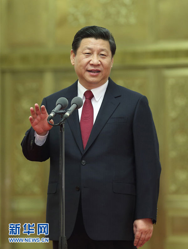 1月6日,黨和國家領導人習近平、李克強、張德江、俞正聲、劉云山、王岐山、張高麗等在北京人民大會堂會見探月工程嫦娥三號任務參研參試人員代表。這是習近平發表重要講話。新華社記者 蘭紅光 攝