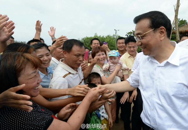 李克強總理在海南東寨港紅樹林濕地保護區考察生態保護。一位漁民將自己用了20多年的船槳贈給總理。李克強愉快地接過船槳說,我收下你的心意。為了保護紅樹林,建設綠色寶島,祖居這里的漁民放棄打漁生活,作出犧牲,這支槳就是見證,應該把它珍存在紅樹林博物館。