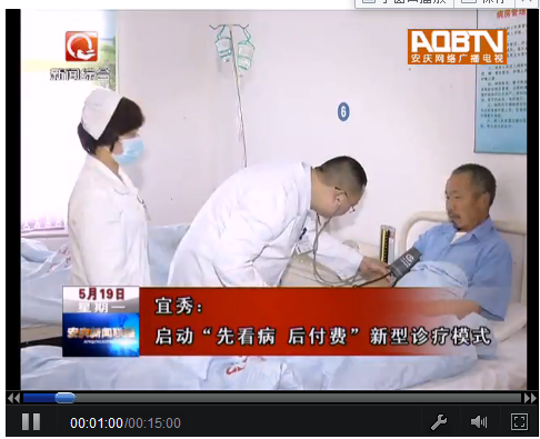 5月19日《安慶新聞聯播》頭條刊播《宜秀區啟動“先看病、后付費”新型診療模式》