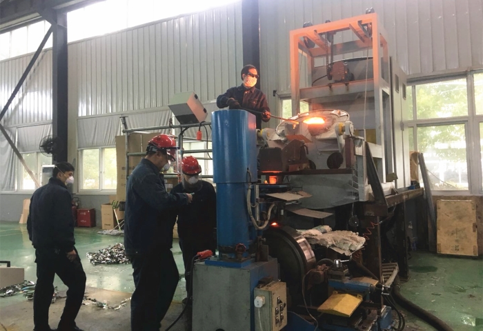 “這套設備2017年由我們自主研發成功,可實現熔煉、制帶、在線收取一體化生產,智能終端控制系統可實現在線自動調節。”公司綜合管理部部長姚雙進說,“其操作只需3人,重力式制帶機操作也只需3人,但算上后續收帶、卷曲、剪切、處理等人工,這套設備在生產效率大大提高的同時,也大大減少了人工需求。”