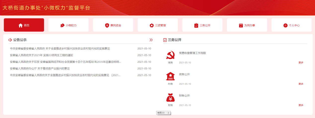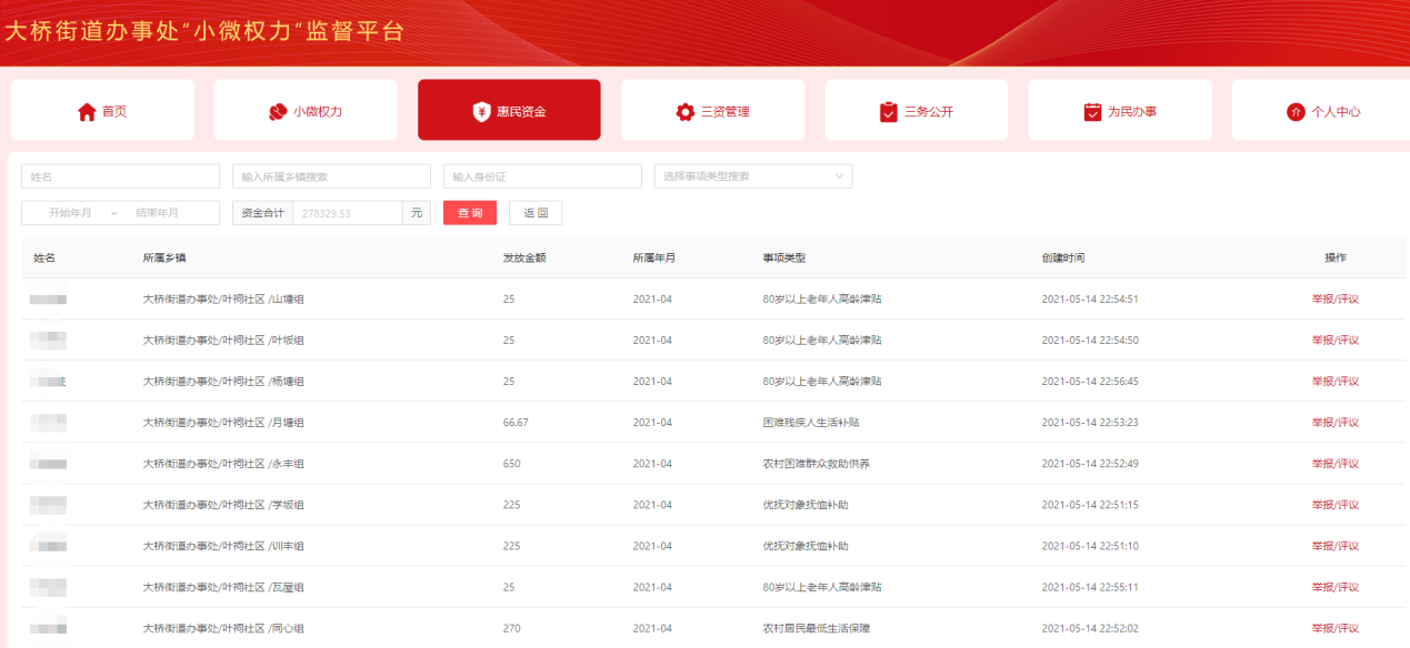 主要是2021年1月1日以來,涉及我區村(社區)村級四議兩公開重大事項、資產資源管理事項、村級招投標事項、村級賬務事項、陽光事項、黨務公開事項、村務公開事項、農村醫療事項、計劃生育家庭獎扶(特別扶助)事項、特困人員救助、最低生活保障、城鄉醫療救助事項、救災事項、居民養老保險事項、困難群眾臨時救助、貧困家庭認定申辦、扶貧項目申請及管理事項、農業服務事項等等。您關心的養老保險、扶貧、低保、危房改造、村級資金使用情況等,均可通過網絡監督平臺進行查看。