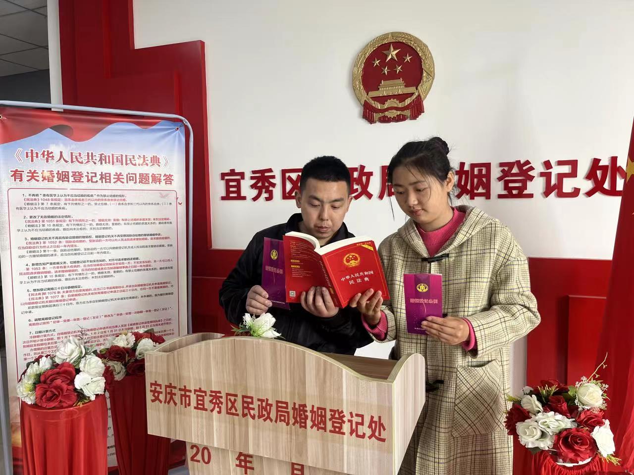 宜秀區(qū)婚姻登記處開展《美好生活 民法典相伴》(婚姻家庭編)普法宣傳活動