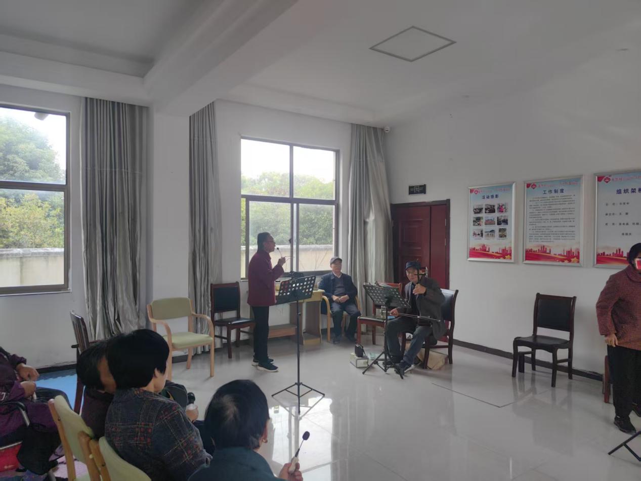 在老年服務方面,龍華村既注重“老有所樂”,更保障“老有所醫”?紤]到村里老年人對傳統戲曲的喜愛,由退休老村干牽頭成立老年黃梅戲俱樂部,將每周一下午定為固定活動時間;顒蝇F場,戲迷們自帶樂器、自備行頭,圍坐在一起唱念做打、切磋技藝!短煜膳洹贰杜馬》等經典選段輪番上演,悠揚的唱腔、精彩的表演引得圍觀村民陣陣喝彩。俱樂部不僅為老年戲迷搭建了展示自我的平臺,更在傳唱經典中傳承了黃梅戲文化,讓鄉村的文化生活愈發多姿多彩。